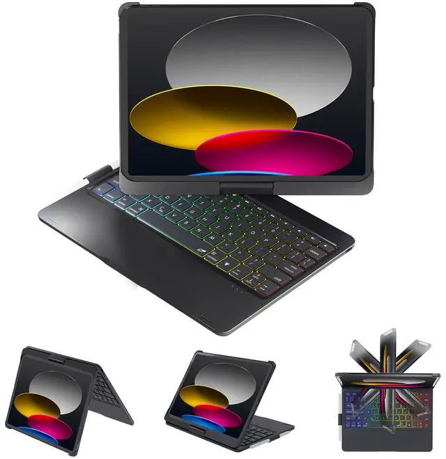 BABG Keyboard Case for iPad 10th Generation&iPad 11th(A16, 2025), iPad Air 11/iPad Pro 11 inch Keyboard&iPad Air 5th/Air 4th Keyboard, 360degSwivel, 7 Use Modes, Backlight, Large Battery-Black