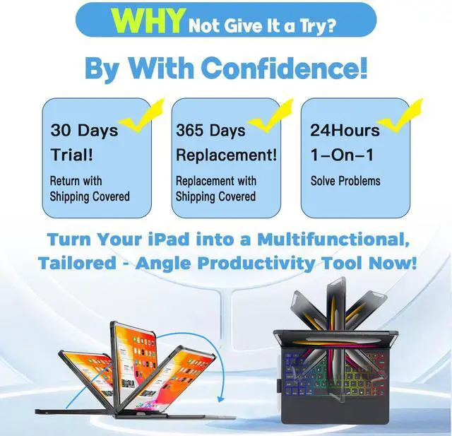 [(ipad 10th Generation Keyboard Case &1 Year Replacement)] - Replacement for iPad 10th Generation Case with Keyboard is offered within 1 year by BABG. We provide unlimited customer service support and tech support. Questions will be responded to within 12 working hours. Transform your iPad into a powerful productivity tool and enjoy a seamless, frustration-free experience every day