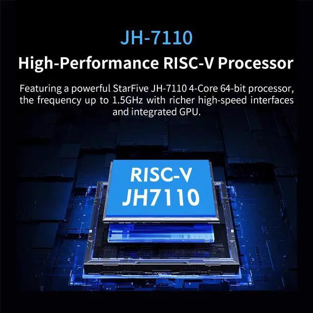 [High-Performance RISC-V Processor]: OrangePi RV is a RISC-V development board featuring a powerful JH-7110 processor. With a 4-Core 64-bit architecture and a stable operating frequency of 1.5GHz, this board offers richer high-speed interfaces and integrated GPU, enabling stronger image processing capabilities, such as 3D rendering.