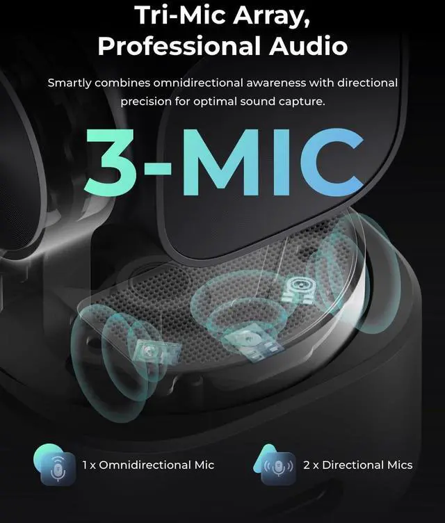 ^^ Tri-Mic Array, Professional AudioAn omnidirectional mic captures the full scene while two MEMS directional mics pinpoint voices. This powerful array fuels five specialized audio modes, ensuring superior noise reduction, crystal-clear quality, and seamless adaptation to any scenario. ^^ AI Tracking 2.0W ith the newly upgraded AI Tracking, the PTZ webcam can identify and lock onto a wide range of targetswhether tracking a single person, an entire group, or over 200 types of objects. Moreover, multiple intelligent tracking modes then ensure a precise frame for any scenario. ^^ Say It or Wave ItCommand your webcam for PC with your voice or gestures.