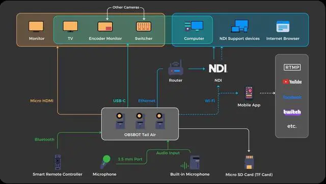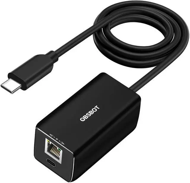 Lower Latency, Designed For Stable Ethernet ConnectionExperience stable and reliable Ethernet connectivity with the OBSBOT Tail Air USB-C to Ethernet Adapter. Enjoy lower latency compared to wireless connections. ^^ Power Over Ethernet (PoE) Support To Router And Other TerminalsSupports PoE technology for simultaneous network connectivity and power supply through a single adapter, which simplifies device cabling and management. ^^ Extra Power Supply Via USB-C Port When PoE Is Not AvailableCapable of additional power supply via the USB-C port, ensuring the Tail Air is charged whenever needed even without PoE support. ^^ OBSBOT Tail Air Official accessoryDesigned specifically for OBSBOT Tail Airs ethernet connectivity, provide stable and smooth signal transmission.