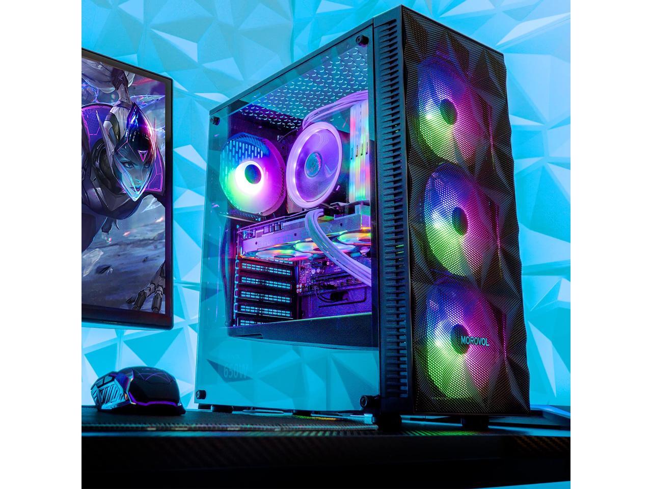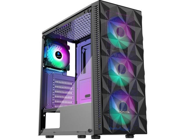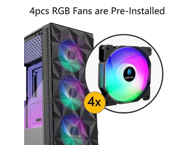 MOROVOL PC Case Pre-Install 4 RGB Fans, ATX Gaming Computer Case with Diamond-Shaped Mesh Front & Tempered Glass Side Panel, USB 3.0 Airflow Mid Tower case,621