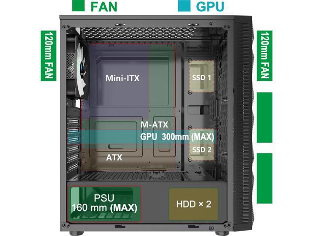 - Precise Design - Morovol 621-N4 computer tower case supports ATX / Micro-ATX / Mini-ITX, the GPU is up to 300mm, the PSU is up to 160mm and the CPU cooling height is up to 155mm. In addition, this black pc case can support to install 2 x 2.5 "SSDs + 2 x 3.5" HDDs.