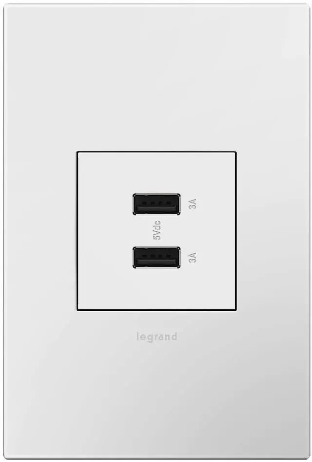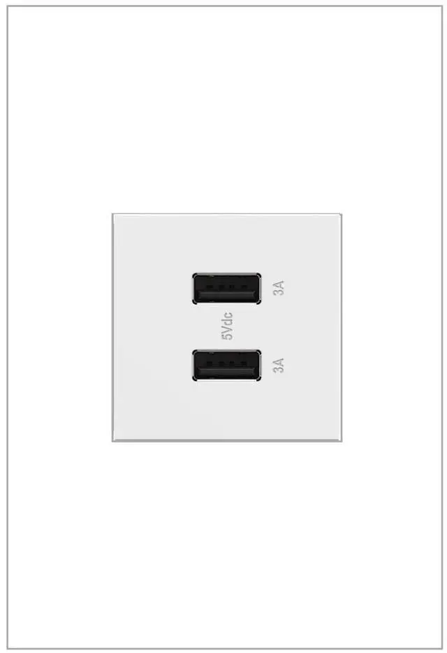 adorne Full-Size, 6A, A/A USB Outlet, White, ARUSB2AA6W4