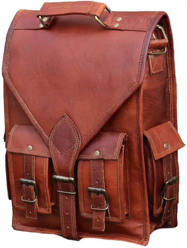 PREMIUM MATERIAL: Superior Top grain Goat leather ,masterfully sewed with durable waxed Thread to ensure long lasting Messenger bag. The inner lining of the bag is sturdy canvas . The bag, when filled, stands on its own!! The bag is convertible, it can be used as a messenger bag as well as a backpack just by adjustig the back strap. The back strap stretches out of the loops to become a messenger bag.