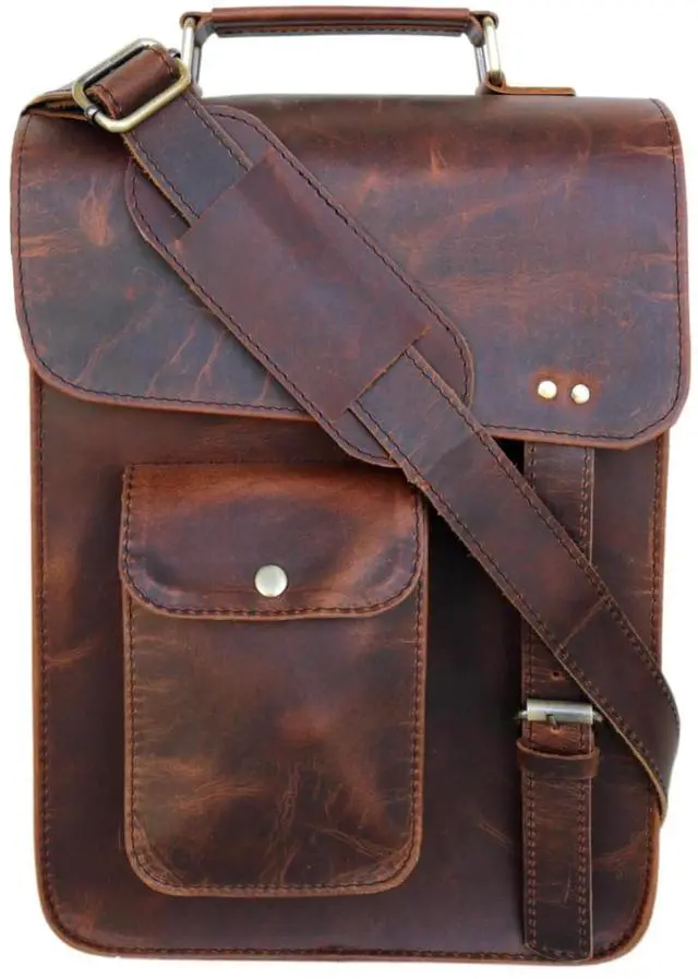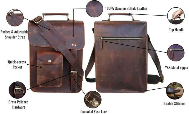 Genuine Leather: This handsome satchel is made from superior top grain buffalo leather that has been masterfully tanned by skilled artisans. The leather will develop beautiful patterns as it ages making it a vintage piece. The minor scratches heal by oil displacement with time.