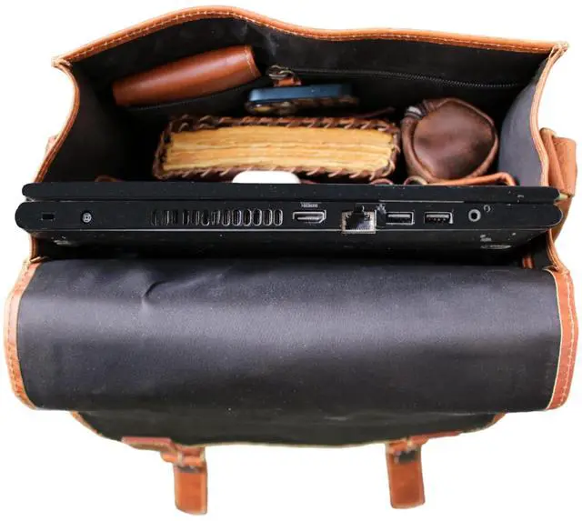 LARGE CAPACITY LEATHER MESSENGER BAG: Our men's messenger bag features three compartments, including a main compartment for a small laptop (up to 15.6 inches), a wallet, keys, and a power bank. There are additional smaller compartments in our Leather messenger bag for men that are perfect for chargers, mouse, and other accessories. The zipper pockets inside and a front pocket in this messenger bag for women offer convenient storage for small items. ^^