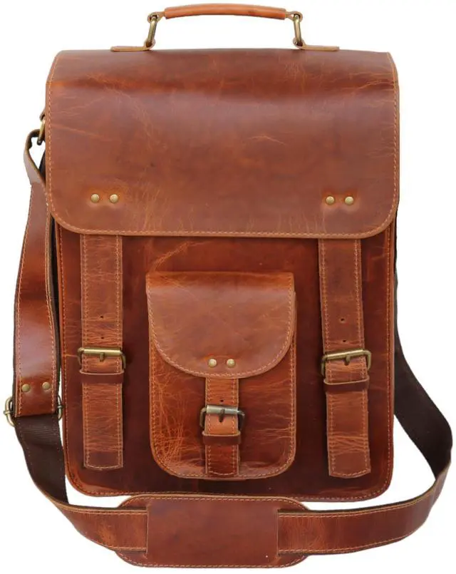 FLEXIBLE VINTAGE MESSENGER BAG: This men's leather messenger bag is equipped with an adjustable shoulder strap with a drop of 25 inches, allowing for comfortable carrying. The rust-proof brass-finished metal hardware and secure buckle closures in our satchel bag men ensure reliability during city commutes. This leather laptop bag for men is quick and easy to use, and the buckles feature convenient push clips.