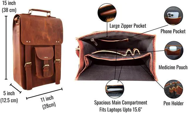 DIMENSIONS: This leather bag for men measures 15 inches in height, 11 inches in width, and 5 inches in depth, making our large satchel bag ideal for various purposes like school, college, business, and city commutes. ^^