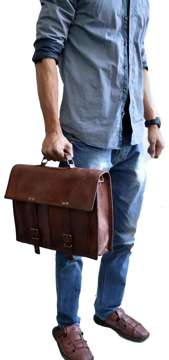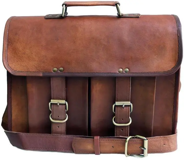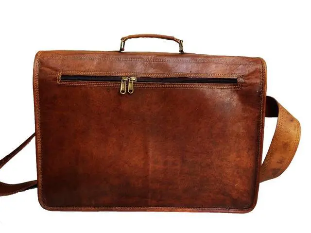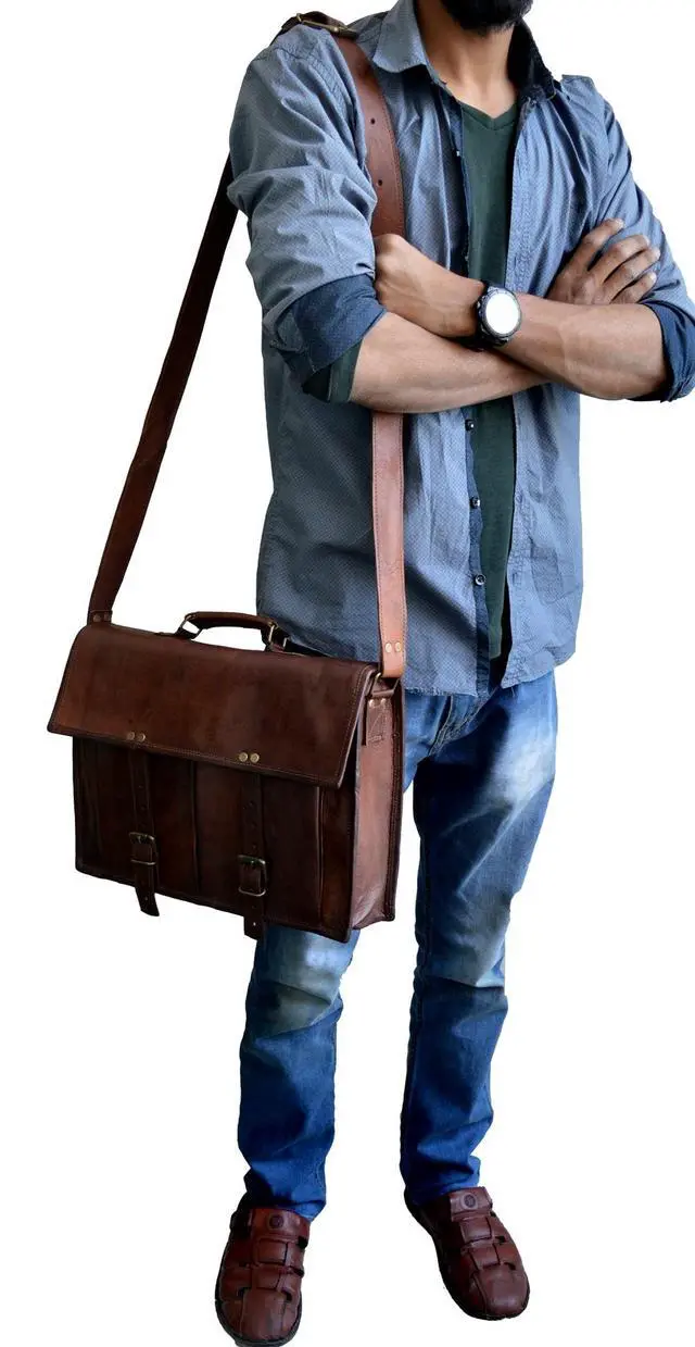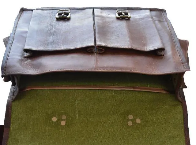 ^^ PREMIUM MATERIAL: Superior Top grain Goat leather, masterfully sewed with durable waxed Thread to ensure long lasting Messenger bag. The inner lining of the bag is sturdy canvas. The bag, when filled, stands on its own!! ^^