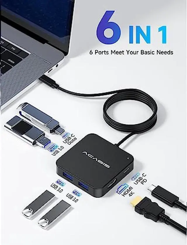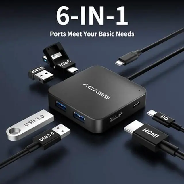 Lightweight and Portable:This compact design make Acasis usb c dongle easy to be carried in a handbag or pocket, nice for travel &business trips. Well spaced square design so that cables plugged in should not obstruct each other
