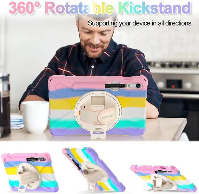 BATYUE Case for Samsung Galaxy Tab S9 FE 10.9" inch 2023, Tab S9/S8/S7 11" inch (2023/2022/2020), With Rotating Stand & Hand Strap, SM-X510 /X516B /X710 /X716 /X718 /X700 /X706 /T870 /T875 /T878, Pink