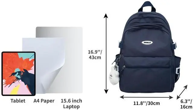 [(Multi-compartments & Large Capacity)] Length: 11.8inch/29cm, Depth: 6.3inch/16cm, Height: 16.9inch/43cm. 1 laptop padded sleeve, 2 front zip pockets and 2 side pouchs for water bottle or folding umbrella.