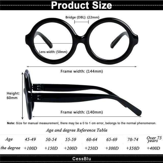 OVERSIZED ROUND FRAME DESIGN: Extra large circle readers with huge frame, and a field of vision that can be easy to obtain. One