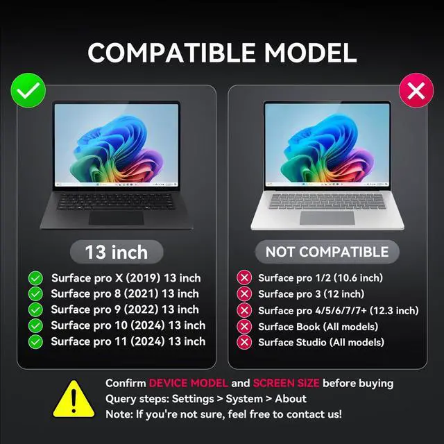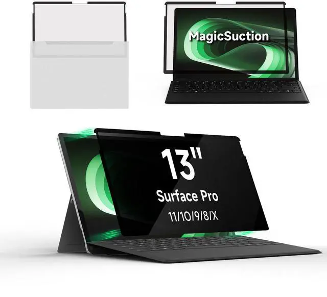 [(Wide Compatibility)] - Privacy screen filter modeled in accordance with the real screen size 1:1 restoration for Microsoft Surface Pro 11/10/9/8/X-13 inch is perfectly compatible with Microsoft Surface Pro 11-13 inch 2024 Release/Surface Pro 10 -13 inch 2024 Release/ Surface Pro 9 -13 inch 2-in-1 Tablet & Laptop 2022 Release/ Surface Pro 8 -13 inch Touch-Screen 2021 Release /Surface Pro X - 13 inch Touch-Screen 2019 Release.
