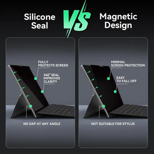 [(Ugraded Design)] - The ultra-thin Paper-like design maintains the device's true touch sensitivity and is compatible with stylus pens. Surface Pro 11/10/9/8/X-13 inch Privacy Screen Filter is reusable, updated with the Nanoglue strip at frame. It's never been so easy to install this privacy film just in seconds and it can be fully and tightly attached on the screen, easy On and Off, bubble free.