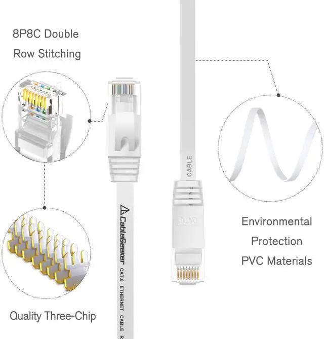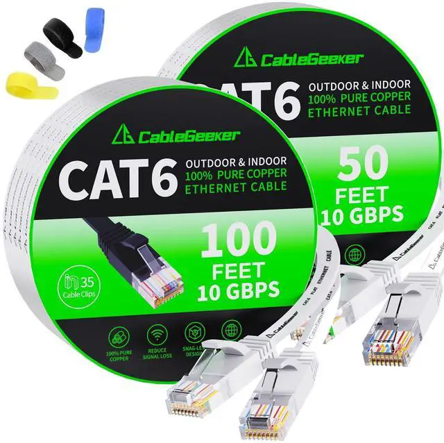 CableGeeker Cat6 Flat 100ft White & Flat 50ft White Ethernet Cable