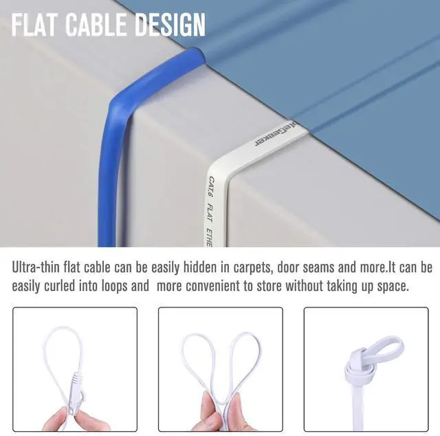 Flat Design for Easy Management: Tired of tangled cords? Our flat Cat6 cable design helps avoid messy cords and saves space. Its ultra-flexible design makes