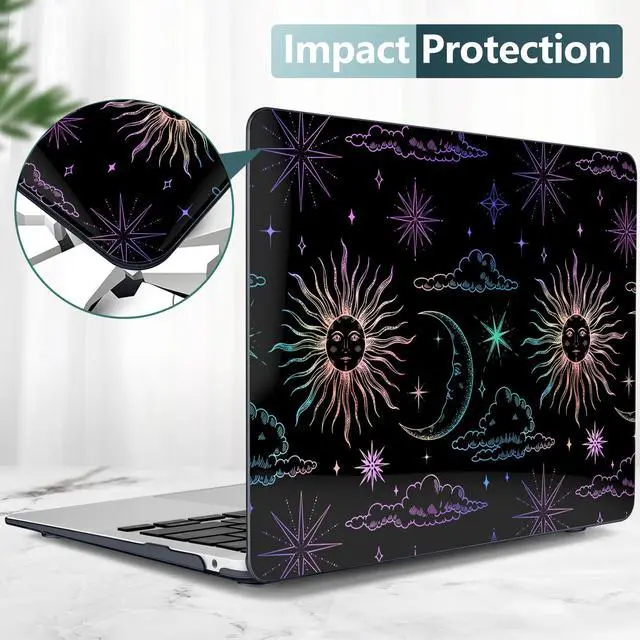 DONGKE Compatible with MacBook Air 13 inch Case 2021 2020 2019 2018 Release A2337 M1 A2179 A1932 with Retina Display & Touch ID, Plastic Hard Shell & Keyboard Cover - Sun & Moon