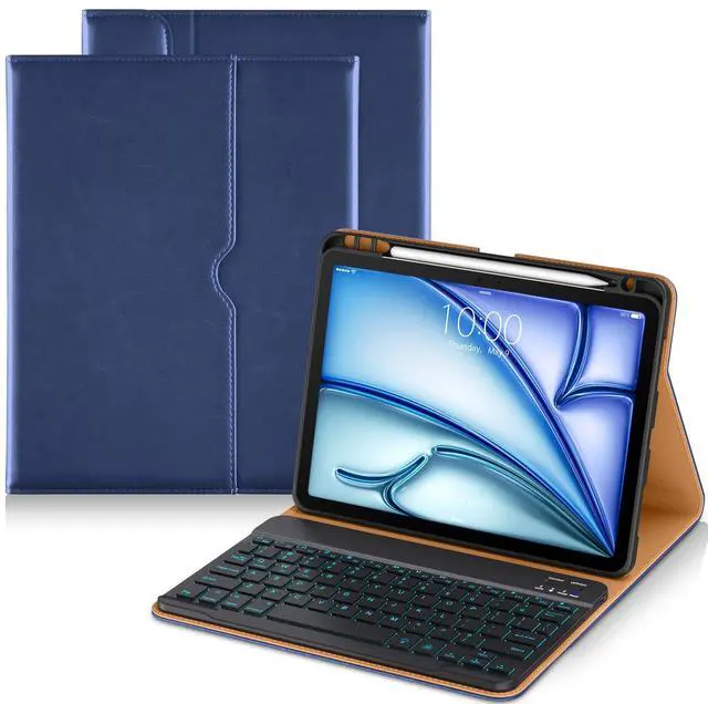 DTTO Keyboard Case for iPad Air 11 Inch M3/M2 2025/2024, iPad Air 5th/4th Generation 10.9 -Inch, 7 Colors Backlit Wireless Detachable Folio Keyboard Cover with Pencil Holder & Pocket, Navy Blue