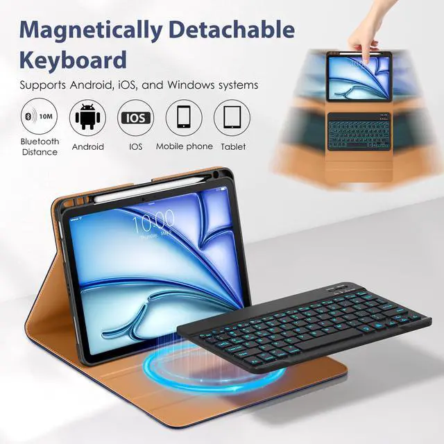 [(Wireless Bluetooth Keyboard)] This for iPad air 11 inch case with keyboard is magnetic so it can be easily repositioned or removed from the case, equipped with multimedia and other useful shortcuts