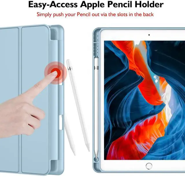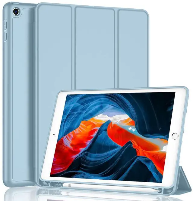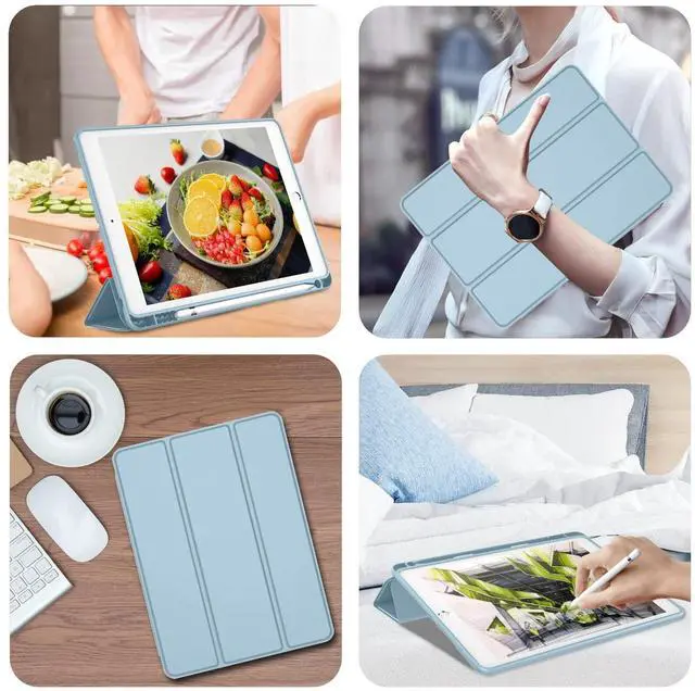 iMieet iPad 9th Generation Case 2021/iPad 8th Generation Case 2020 10.2 Inch with Pencil Holder, iPad 7th Gen 2019 Case with Soft Baby Skin Silicone Back, Auto Wake/Sleep Cover (Light Blue)