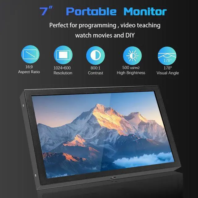 JniTyOpt 7 Inch TYPE-C/DC/AV/VGA HDMI display LCD 1024*600 High Resolution for Raspberry Pi 4/3 Model B/3B+/BB BLACK/Banana Pi,Work as Computer Monitor for Windows 10/8.1/8/7 HDMI Monitor for DVD/TV
