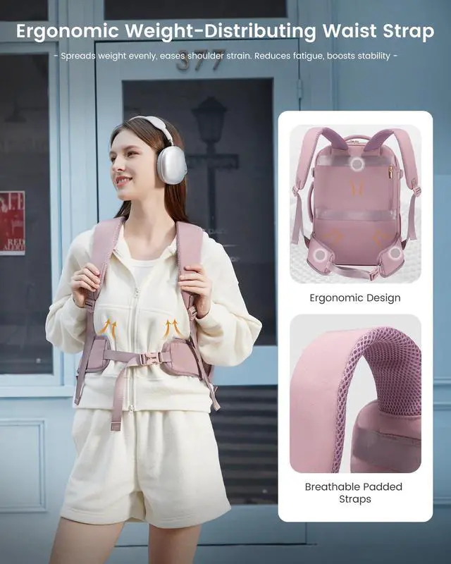 [(Ergonomic Comfort for Every Adventure)] LOVEVOOK travel backpack features a waist belt that shifts weight to your hips, easing shoulder strain and boosting stability on rough terrain, while keeping the pack secure. Adjustable shoulder straps ensure a perfect fit for lasting comfort on long journeys.