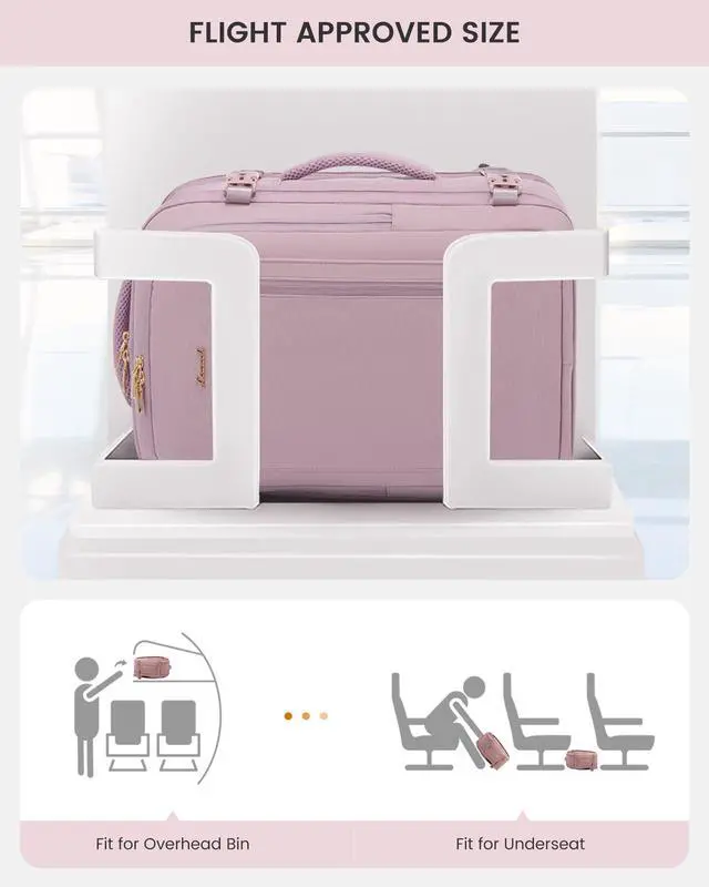 [(Airline Approved Personal Item)] With 18x14x8 inches, the carry on backpack can fit in overhead compartments and under airplane seats. The 180-degree opening design for compartments expedites security checks, making your airport experience as smooth as your travels.
