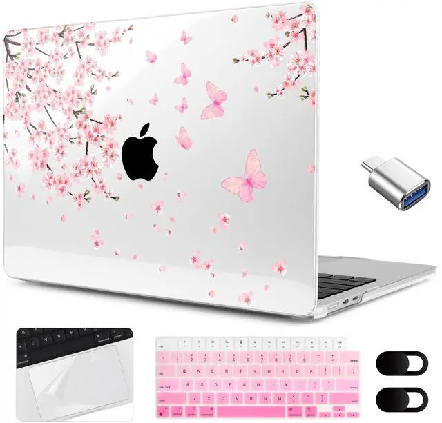 MEEgoodo Case for MacBook Air 15 inch M4/M3/M2 2025 2024 2023, Case Fit Model (A3241/A3114/A2941) for MacBook Air 15-inch, Laptop with Keyboard & Camera Cover & OTG Adapter, Cherry Blossoms