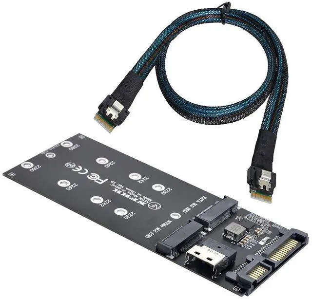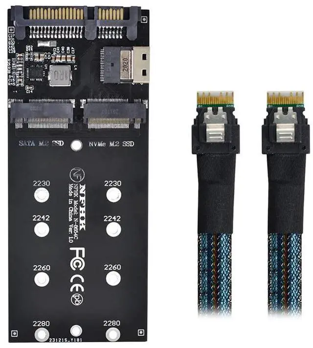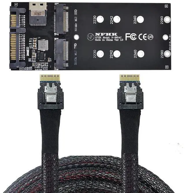 SFF-8654 Cable & Card U2 Kit NGFF M-Key to Slimline SAS NVME PCIe SSD SATA Adapter for Mainboard
