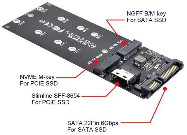 1. One M. 2 PCIe SSD in 2280, 2260, 2242 and 2230 format can be connected and used as a replacement for a 2.5 '' HDD. The converter can be installed into the system internally through the SFF-8654 Slimeline interface.