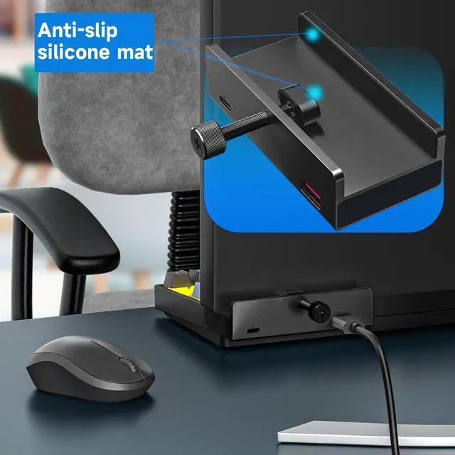 For 2023 iMac Aluminum Clampable Hub Design:mountable usb hub designed with adjustable screw allow you to mount monitor screen edge or desk edge thickness from 0.39 to 1.18 inches (10-30mm), It can be firmly fixed on the edge of the desktop or monitor for a semi-permanent mount, and will not shake or move when plugged in or out.The parts in contact with the desktop or monitor are covered with soft silicone pads to avoid scratches.The power adapter needs to be purchased additionally!This product can only reach USB 3.0, customers who need USB 3.2 also please do not buy the wrong link!