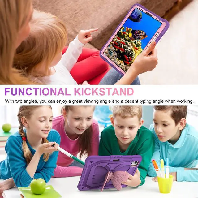 for iPad Air 5th/4th Generation Case with Screen Protector, for iPad Pro 11 Inch Case Butterfly Stand Strap Dolls Pencil Holder Kids Girls Hard Cover for iPad Air 4th 5th 10.9 /iPad Pro 11 2022-Purple