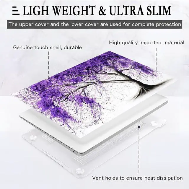 Yicomon Compatible with MacBook Air 13 inch Case 2020 2021 M1 A2337 A2179 A1932, Plastic Hard Shell Case for Mac Air 13 with Touch ID (2018-2021) - Purple Wishing Willow