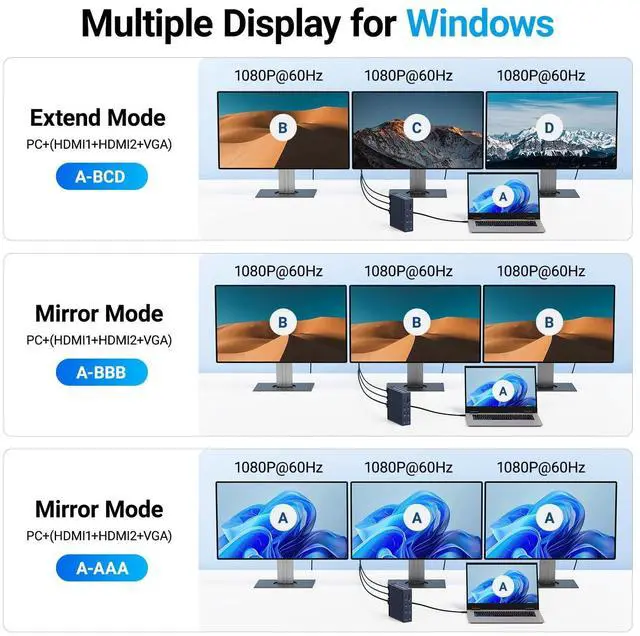 Display Docking Station: This 16 in 1 USB C Docking Station Dual HDMI Monitor supports single 4K display and triple 1080P 60Hz displays. ONLY Windows system support MST and SST(Mirror & Extend Mode). MacOS system DOES NOT support MST. ^^ 10Gbps USB C 3.1