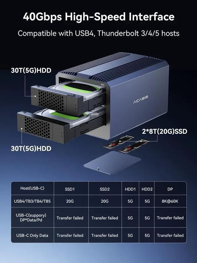 (Note: Full 40Gbps speed requires RAID mode and is compatible with Thunderbolt 3/4/5 and USB4 ports only. ) ^^ Hybrid