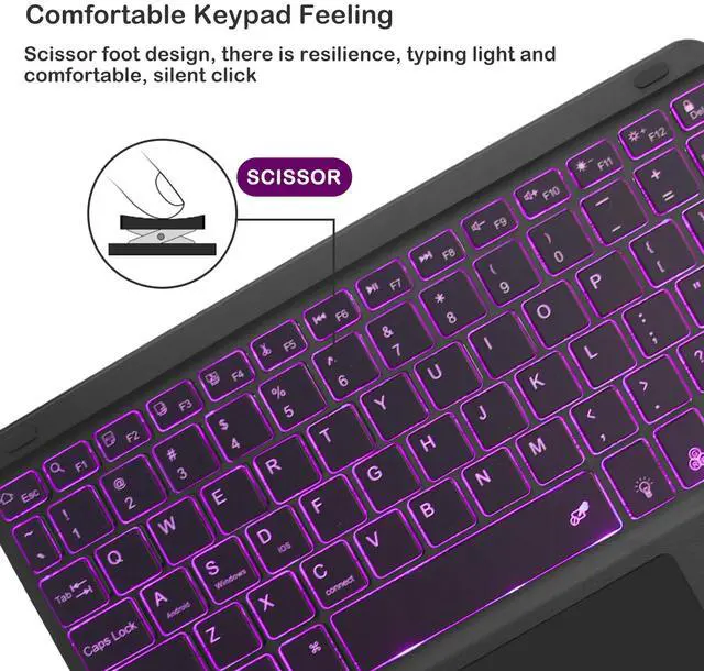 This Bluetooth keyboard with touchpad has an ultra-slim design with a thickness of 0.27 inches and a keycap design that fits the size of your fingers. Not only is it easy to carry and travel with, but the experience of using it is also more comfortable.