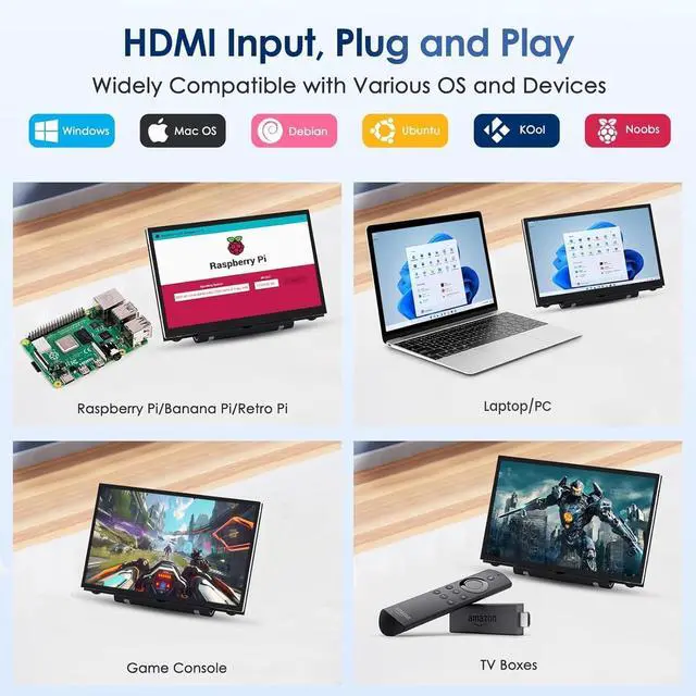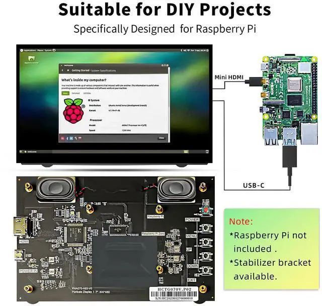 Raspberry Pi Monitor -- HAMTYSAN Raspberry Pi display adopts tempered glass and full bonding process, with a resolution of 800*480. Raspberry Pi lovers can't miss this uniquely designed small monitor! Easily mount your Pi to the back of this 7" screen monitor. Four holes let you mount a small display to whatever DIY IoT project you're working on. ^^ Plug n Play and Wide Compatible -- Signal via HDMI port, power via Type-C port, drive free, 7 inch lcd display is plug & play. Support Raspberry Pi 4/3/2/1, Windows 7/8/10/11 PC, video game console like NS/XBOX/PS4.