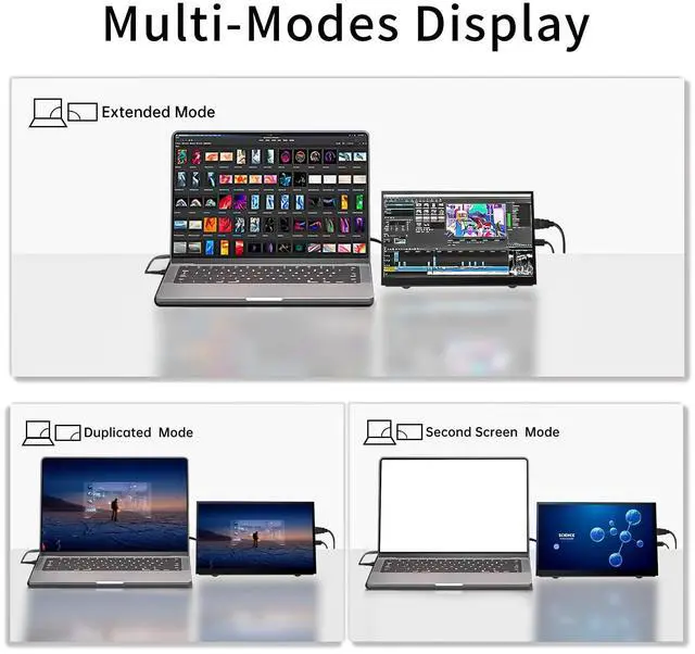 ^^ Unique Design and Warm Tips -- With a multi-angle adjustable bracket, the bracket groove is made of rubber, which protects the edge of the display well and supports the small monitor stably. The portable hdmi monitor is light and easy to carry.