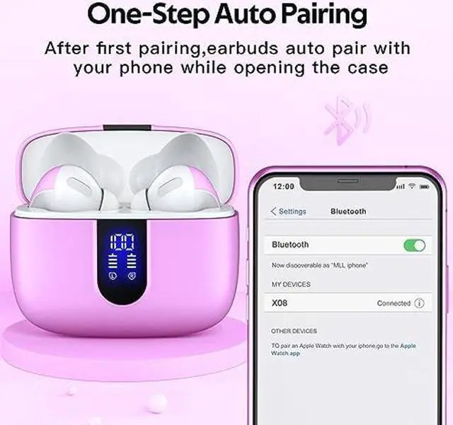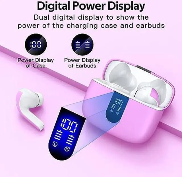 LED Power Display and 60H Playback: Dual digital LED power display outside of the case is to show the power level for charging case and earbuds. When charging for the case, the LED light will start to flash from 1 to 100. When you put earbuds into the case, then earbuds will start to be charged. 470mAh battery capacity charging case can provide 6 times full charging for both earbuds, each earbud can last 5H on single charging. So, you can enjoy 60H music time in total via using in turn.