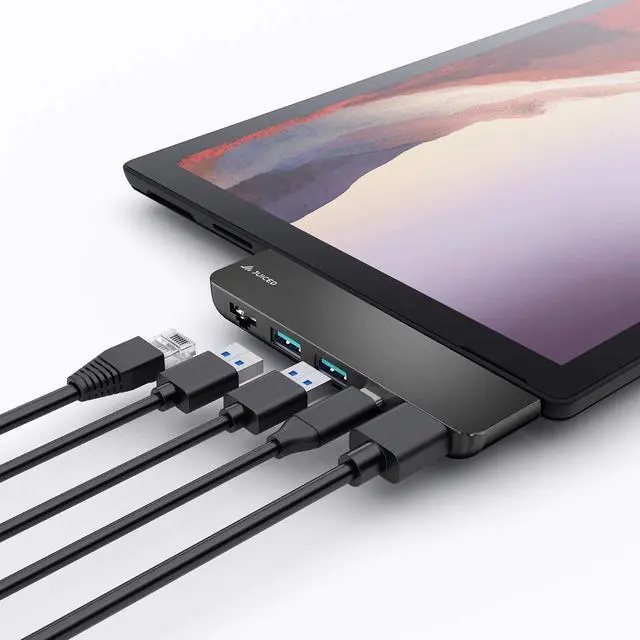 Juiced Systems ZipHUB PRO ^^ Surface Pro 7 Multiport Adapter ^^ USB-A 10 Gbps ^^ Gigabit Ethernet ^^ USB-C Data (10Gbps)