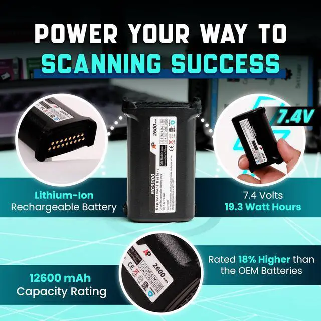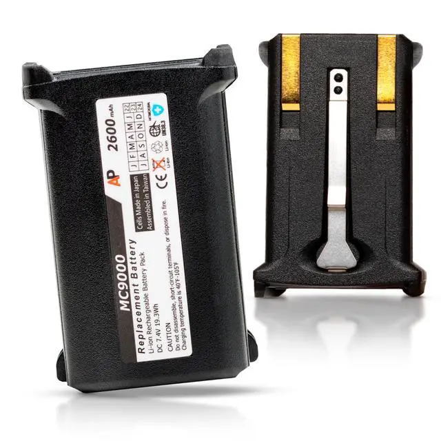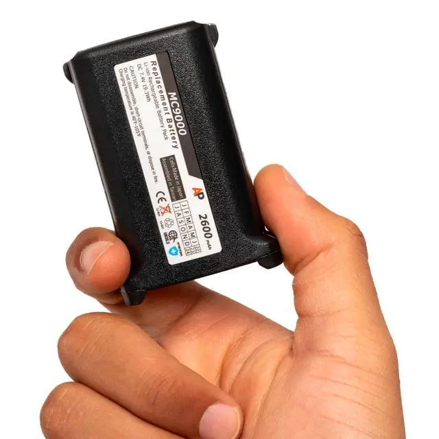 MC9090-G and MC9090-K Replacement Battery. MC9000-G/K, MC9060-G/K, MC9097-G/K, MC9190-G/K, and MC9200-G/K ^^ Fully replaces OEM battery number KT-21-61261-01, 21-65587-02, 82-111734-01, BTRY-MC9X-26MA-01, BTRYMC9X26MA01, and OPT-MC9190BR-SB-30 ^^ Lithium Ion Rechargeable Battery Pack ^^ 7.4 Volt ^^ 2600 mAh ^^ Cells Made in Japan ^^
