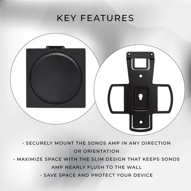 Slim design: Sonos Amp mounting bracket maximizes space with a slim design that keeps Sonos Amp nearly flush to the wall