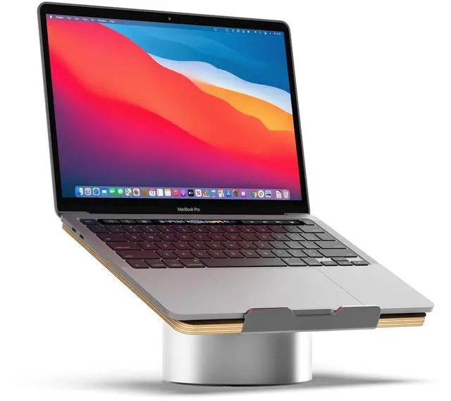 Premium construction and materials: The space gray cylindrical base is made from anodized aluminum metal and has a silicone bottom to prevent unwanted movement. The wood is real black walnut veneer over premium plywood which gives a layer effect along the edge. The front lip is also padded with silicone to prevent scratches on your computer. ^^ We recommend using this product with an external keyboard and mouse. Some customers also use it as a book or notebook stand when not using it for their laptop. The laptop stands provide the desktop experience with or without a monitor. It helps promote better posture by elevating your screen to eye level.