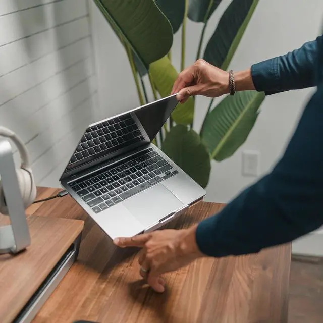 A gorgeous aluminum and black walnut wood laptop stand: The HumanCentric laptop riser lifts your laptop to eye level for an ideal laptop workspace setup. Elevate your laptop when using it as a second display computer stand and get the proper angle to work with another monitor. The wooden top and aluminum base add a handsome look to any workstation. Great for anyone interested in creating a clean, minimalist desk aesthetic and for people who want a more comfortable, organized, and visually appealing workspace. ^^ Designed as a MacBook stand by obsessed laptop users at HumanCentric for professionals, students, and remote workers needing an ergonomic laptop setup. The unique design of the laptop holder brings excellence in both form and function to your workspace. The pedestal minimizes the footprint of the laptop stand on your desk. We designed it as a MacBook Pro stand but it works as a laptop desk stand for any laptop computer up to 16 inches. ^^