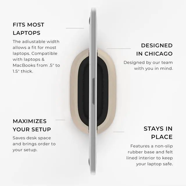 Maple wood vertical laptop stand: cradle and hold your laptop or MacBook in style. Save valuable desk space and protect your device from spills with a vertical laptop holder. Adapts perfectly in home offices, coworking spaces, or minimalist desk setups and it's Ideal for students, professionals, remote workers or those interested in minimal, organized, and aesthetic workspaces. ^^ The adjustable width is highly compatible and fits most laptops and MacBooks from 0.5 to 1.5 inches thick. Use the four screws on the bottom of the stand to adjust for the perfect fit. The vertical laptop stand is weighted for stability and support. ^^ Sleek and minimalist design is both functional and space-saving while adding a unique look and feel to your desk setup. The felt interior protects your MacBook stand and works with cases and covers. The textured exterior is made from wood with a maple veneer. ^^ Get the full desktop experience and connect an external monitor, keyboard and mouse to your laptop, then dock your computer. For a Mac stand, use closed-clamshell mode while using your MacBook holder. Used by tech enthusiasts, designers, office professionals or anybody looking to optimize their workspace.