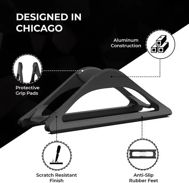 ^^ PATENT PENDING DESIGN: Sleek and minimalist design (multiple US and international patents pending) is both functional and space-saving while adding a unique look and feel to your desk setup vertical laptop stand made of anodized aluminum alloy with a black finish ^^