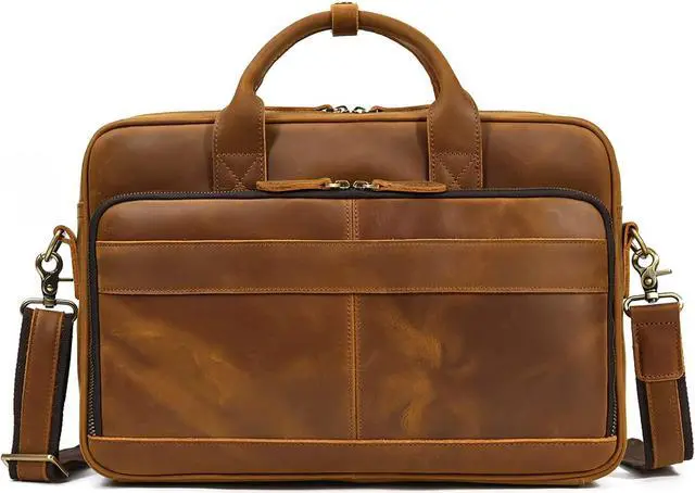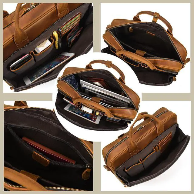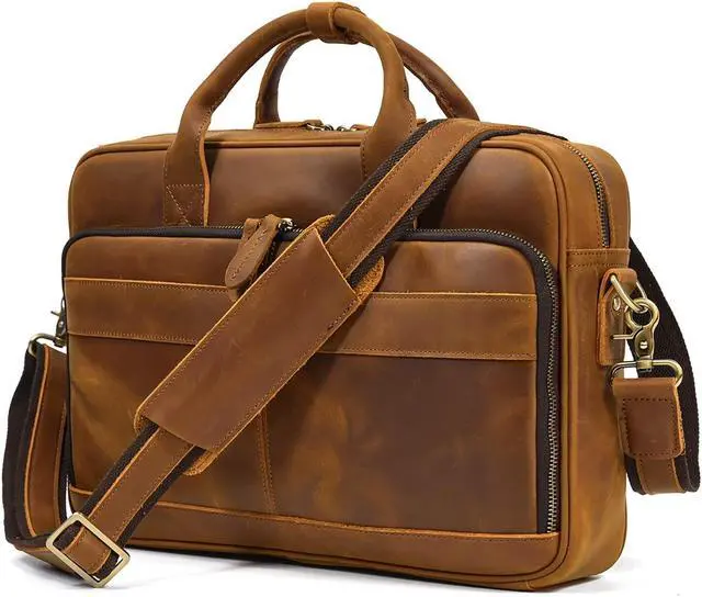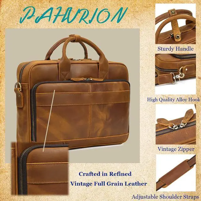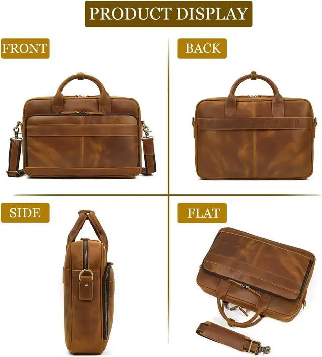 [(Perfect Gift)] This leather business laptop briefcase bag is a great gifts for men like Fat