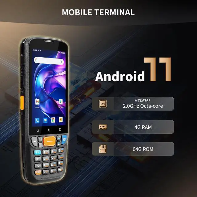 Boost Productivity: This mobile terminal runs on Android 11 operating system, powered by an octa-core MTK6765 processor for lightning-fast performance. With 4GB RAM and 64GB storage, it handles multiple business applications seamlessly. Stay connected anywhere with dual-band WiFi, 4G LTE, Bluetooth 5.1 and NFC support - perfect for mobile payments, inventory scanning and field service operations. The comprehensive connectivity options ensure compatibility with all your essential business apps and systems.